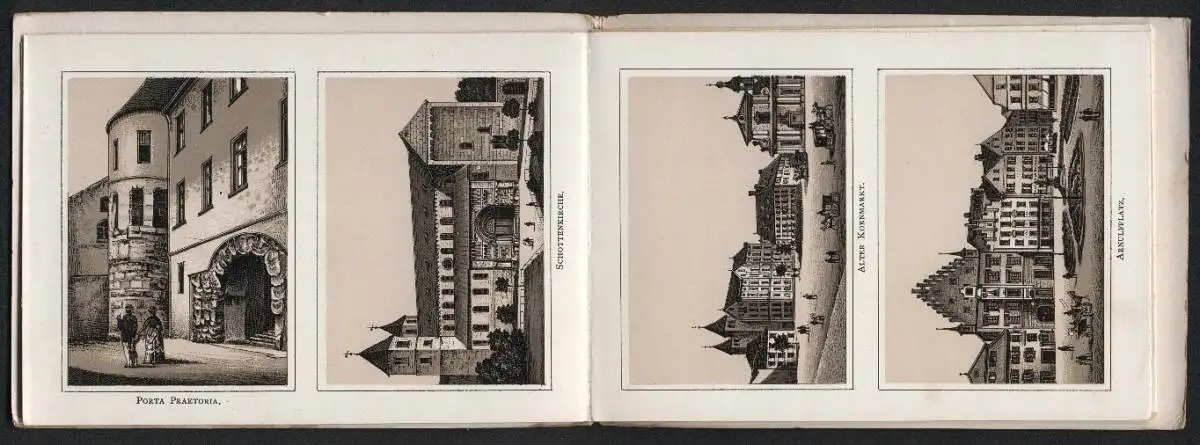 Leporello-Album 22 Lithographie-Ansichten Regensburg, Schloss Fürstin Thrun & Taxis, Walhalla, Befreiungshalle, Kornmarkt
