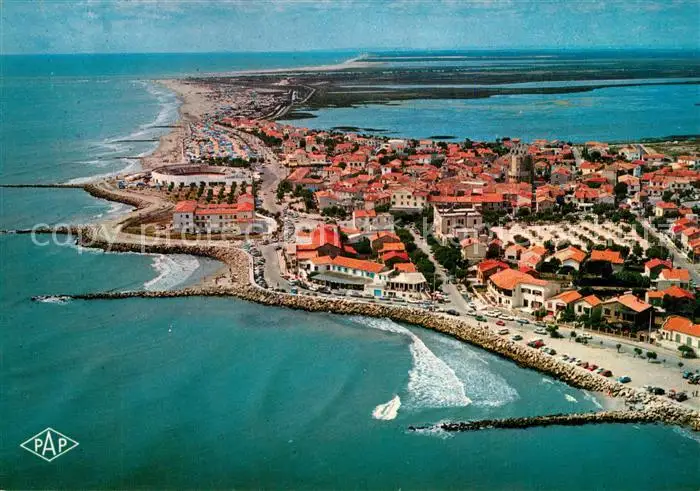 Les_Saintes Maries de la Mer Vue generale aerienne du Front de Mer Les