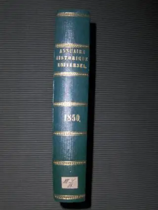 Titel: ANNUAIRE HISTORIQUE UNIVERSEL ET HISTOIRE POLITIQUE POUR 1850 *. Avec un appendice contenant les actes publics, traites, notes diplomatiques, papiers d‘etats et tableaux statistiques, financiers, administratifs et necrologiques; - une chronique offrant les evenements les plus piquants, les causes les plus celebres, etc.; et des notes pour servir a l‘ histoire des sciences, des lettres et des arts