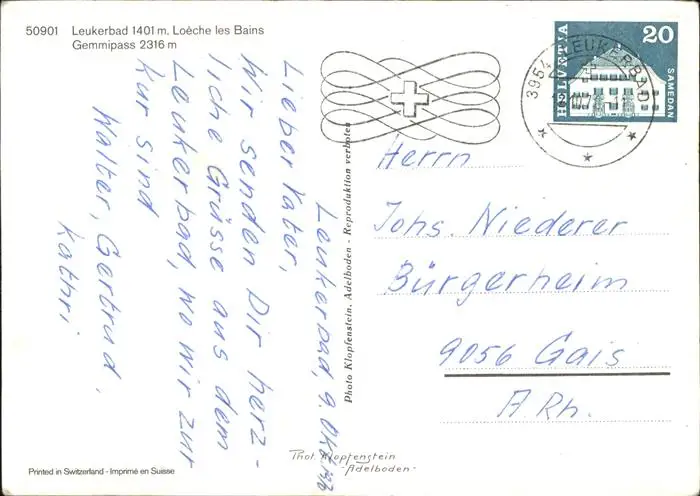 Leukerbad Loeche-les-Bains postalisch gelaufen 1976 Erhaltung siehe scans Alte Ansichtskarte Postkarte BertBack