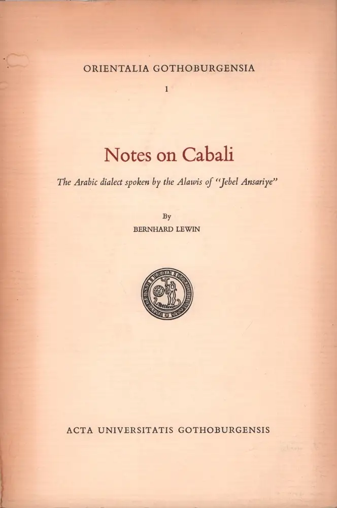 Lewin, Bernhard: Notes on Cabali. The Arabic dialect spoken by the Alawis of "Jebel Ansariye".