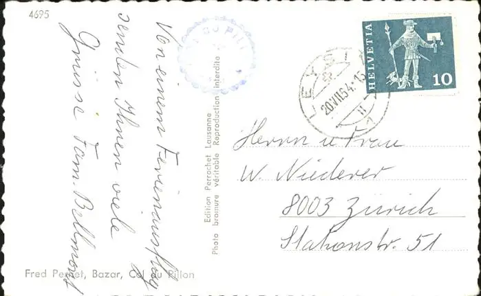 Leysin Col du Pillon Leysin postalisch gelaufen 1954 Erhaltung siehe scans Alte Ansichtskarte Postkarte BertBack