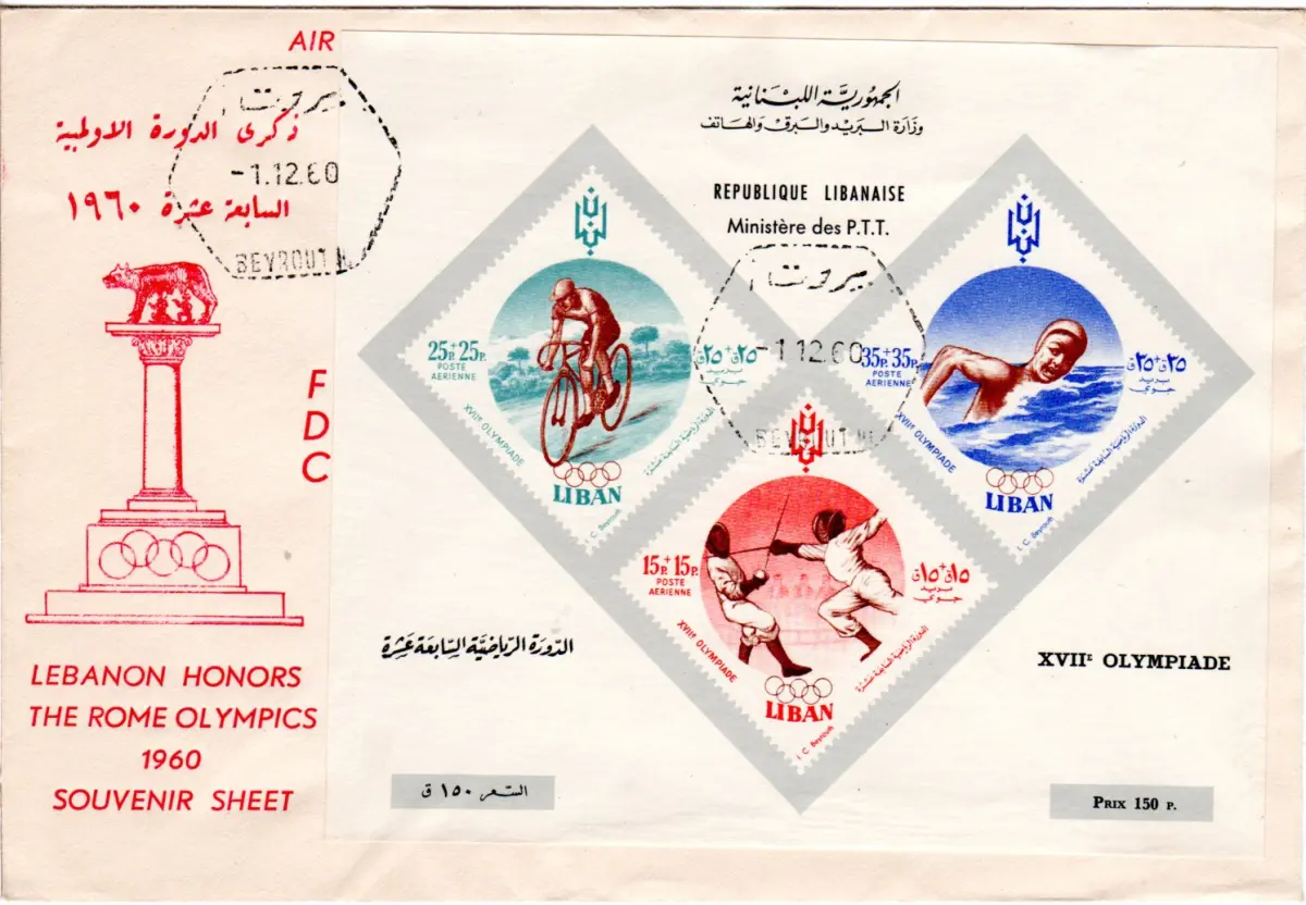 Libanon Block zur Olympiade 1960 in Rom auf sauberem FDC v. Beyrouth