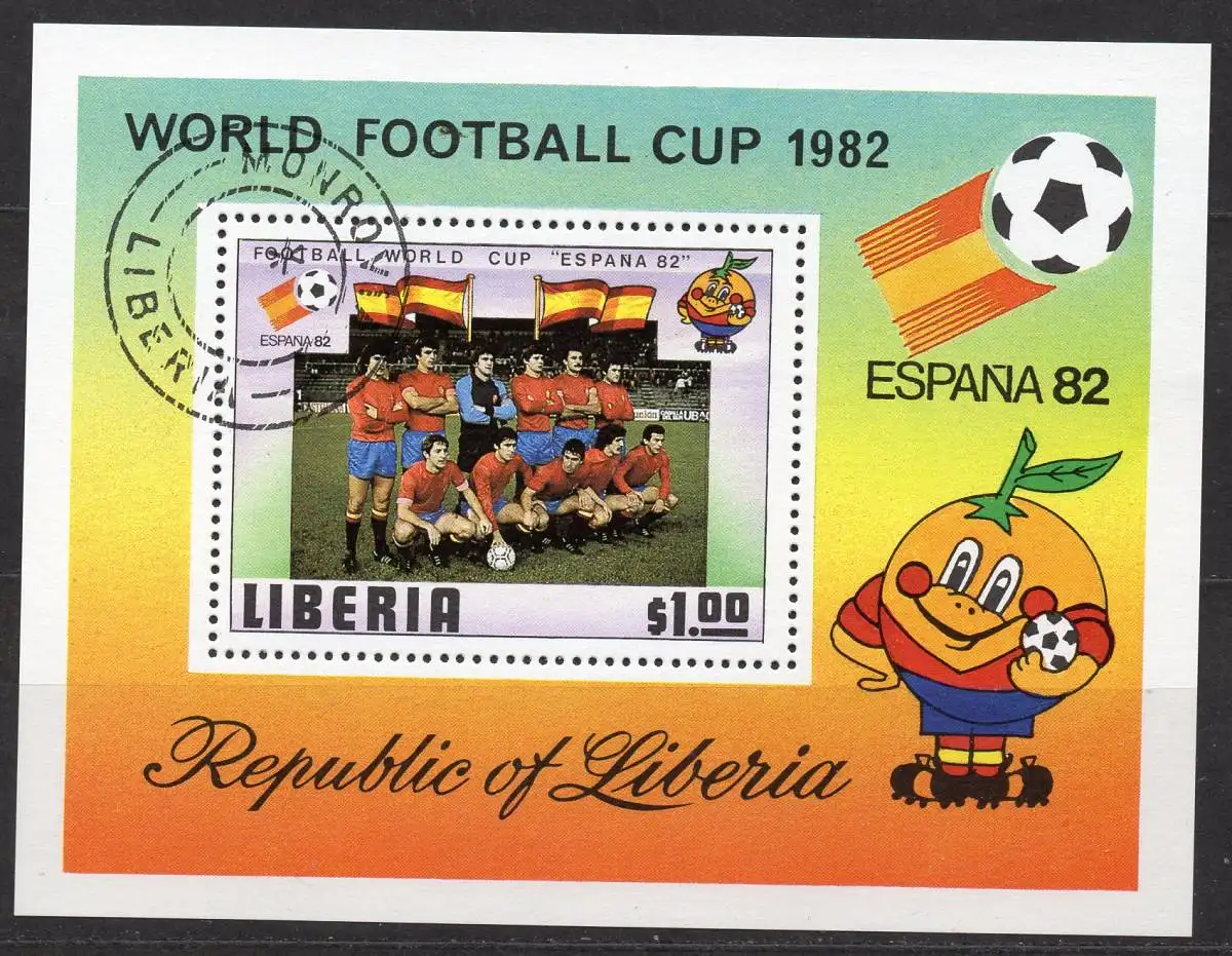 Liberia, Block Mi-Nr. 96 gest., Fußball-WM 1982 Spanien