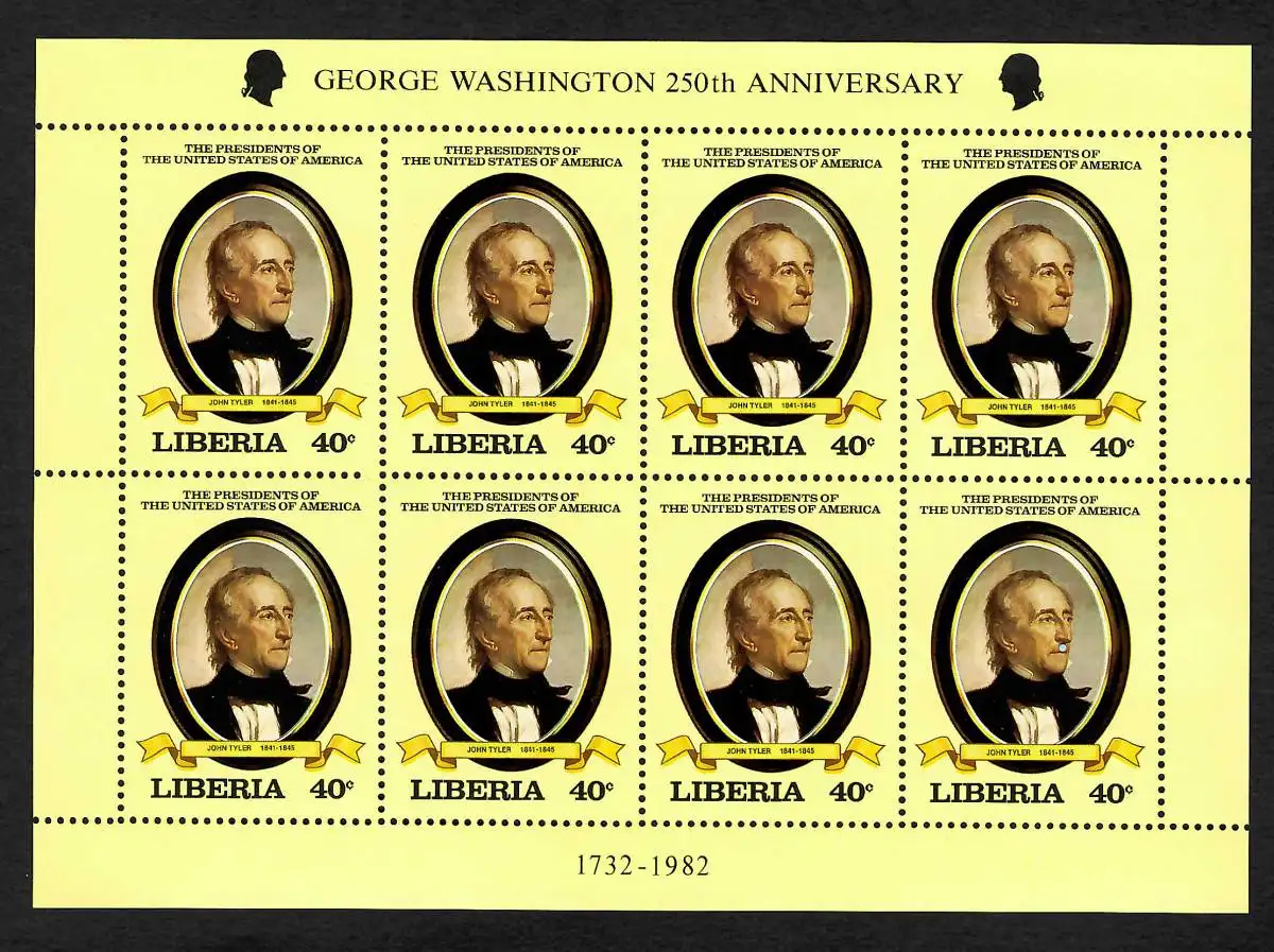 Liberia: Georg Washington 250th Anniversary: Block of John Tyler, mnh