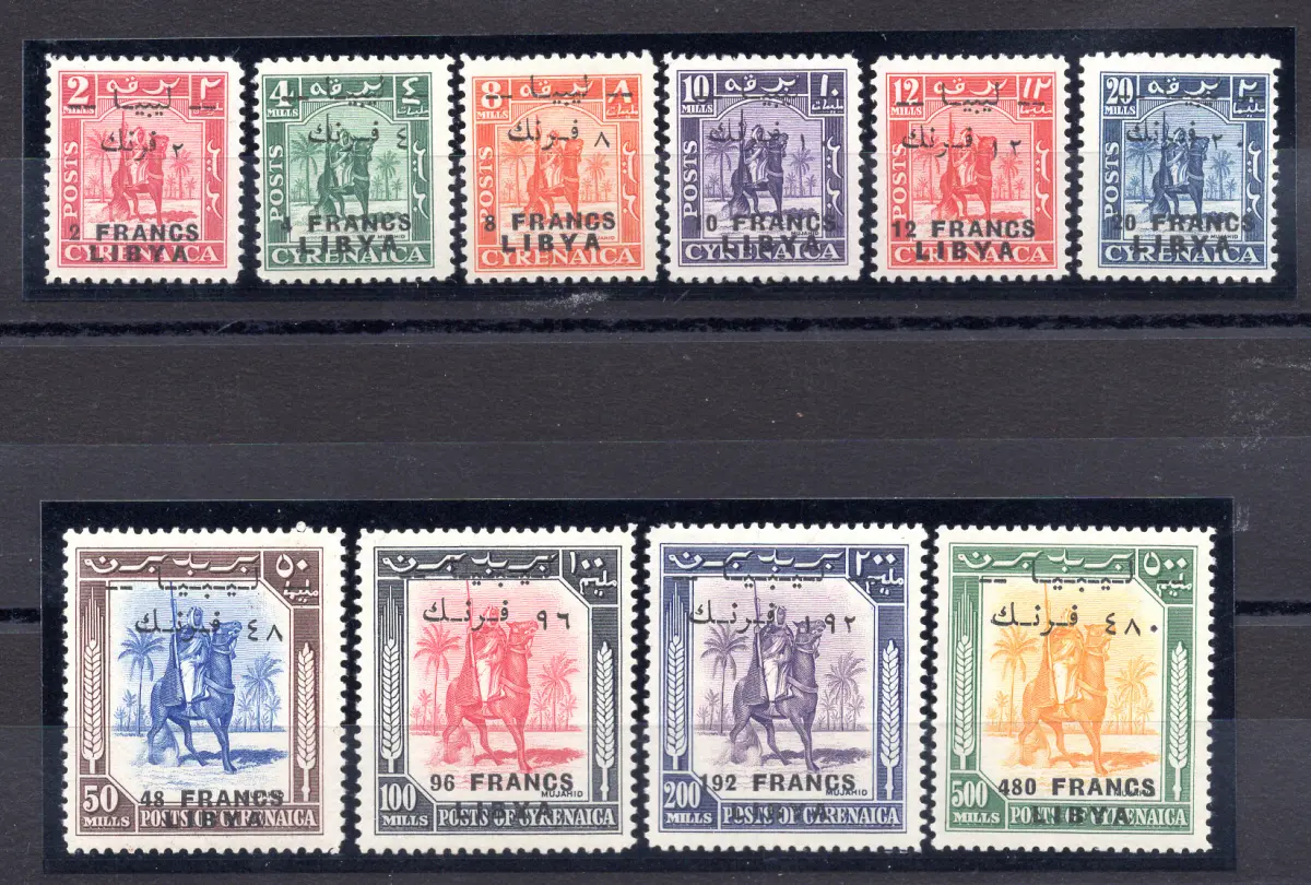 Libyen Unabhängiges Königreich - Ausgabe für den Fezzan, Ritter Senussita in Franken Nr. 14/23 wunderschöne komplette Serie der Erstauflage, sehr gute Qualität und Zentrierung - Kat. 1.450 - Rare - MNH Cod. 1216/OUTLET