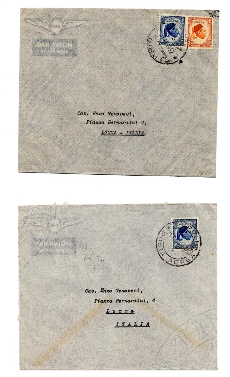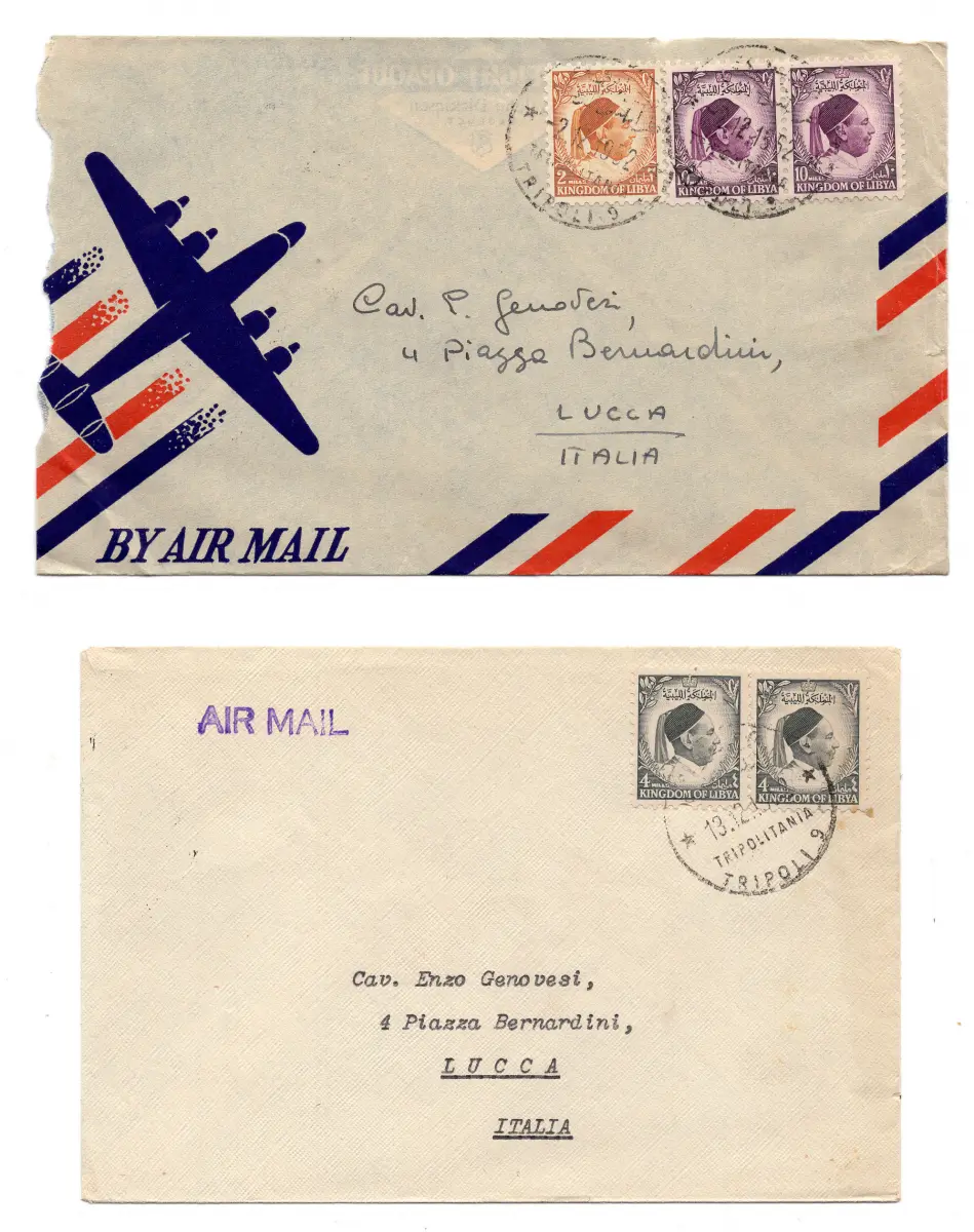 Briefumschlag - Libyen Vereinigtes Königreich - König Idris, Lot von vier Umschlägen, die auf dem Luftweg nach Italien mit verschiedenen Frankaturen gereist sind - Beachten Sie eine Frankatur mit Paaren von 4 m. grau (offener Brief) - Schönes Set Cod. 1089/17