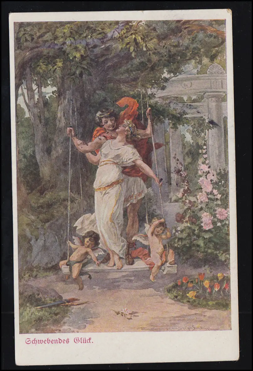 Liebes-AK Hans Kaufmann: Schwebendes Glück - Schaukel mit Engeln, 1920