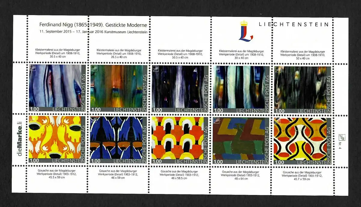 Liechtenstein 2015: Ferdinand Nigg, Gestrickte Moderne, Kollektionsbogen **