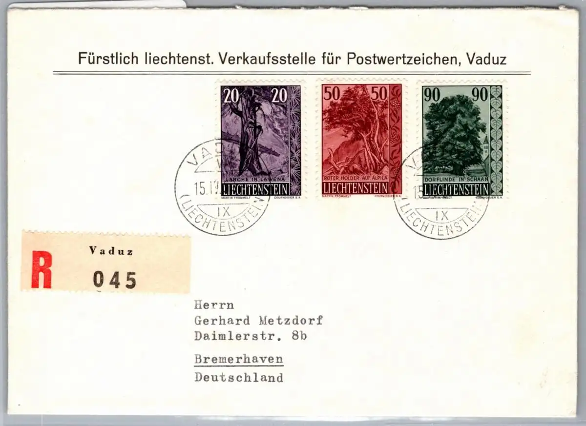 20,50,90 Rappen als Satzbrief von Vaduz nach Bremerhaven gelaufen.