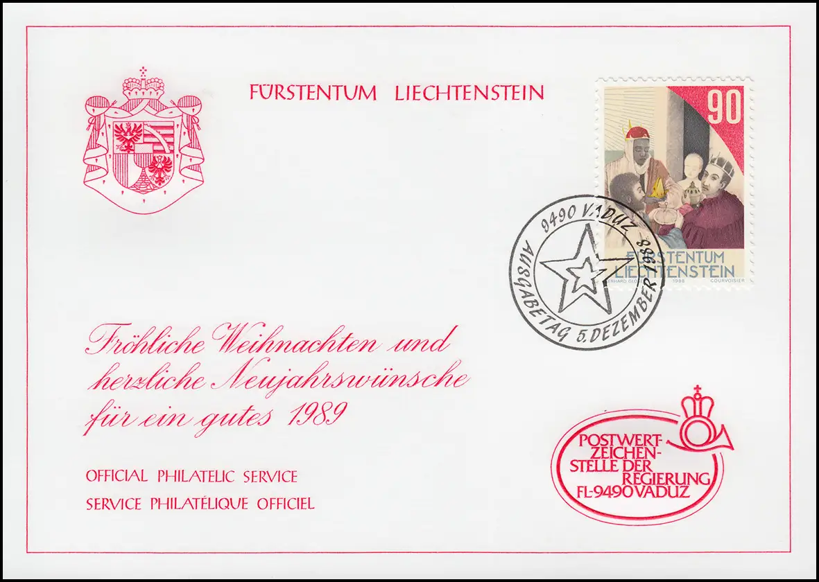 Liechtenstein 956 Weihnachten - Grußkarte zum Jahreswechsel 1989