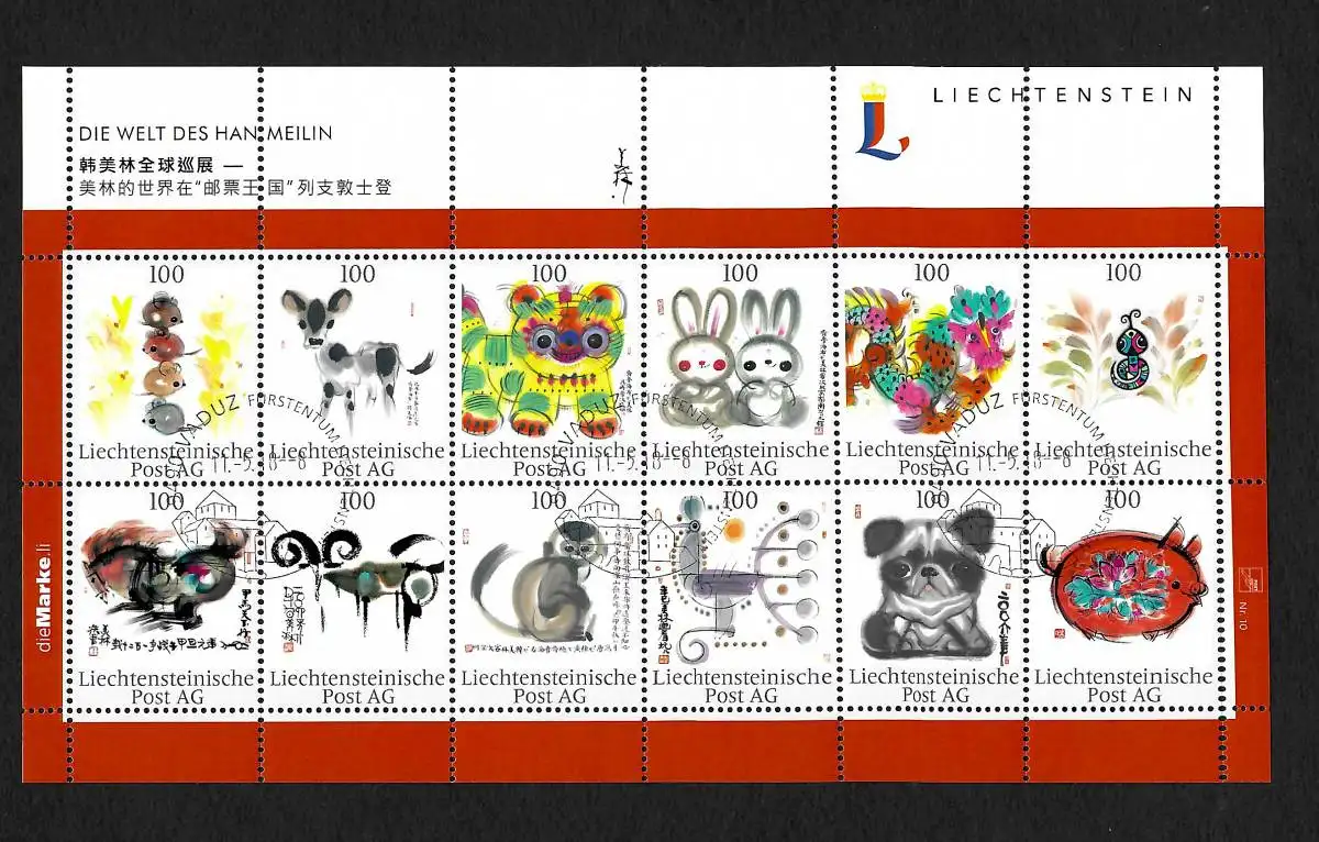 Liechtenstein: Die Welt des Han Melin, 10. Kollektionsbogen, gestempelt