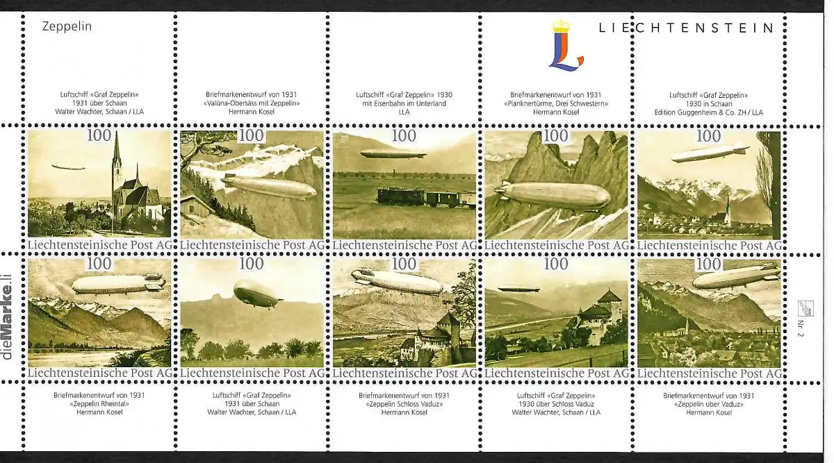 Liechtenstein: Zeppelin Luftschiffe, 2. offizieller Kollektionsbogen, postfrisch