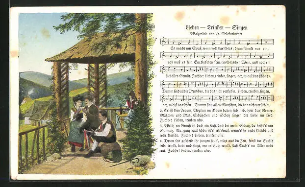 Lied-AK Hilmar Mückenberger: Lieben-Trinken-Singen, Frauen und Männer in Tracht