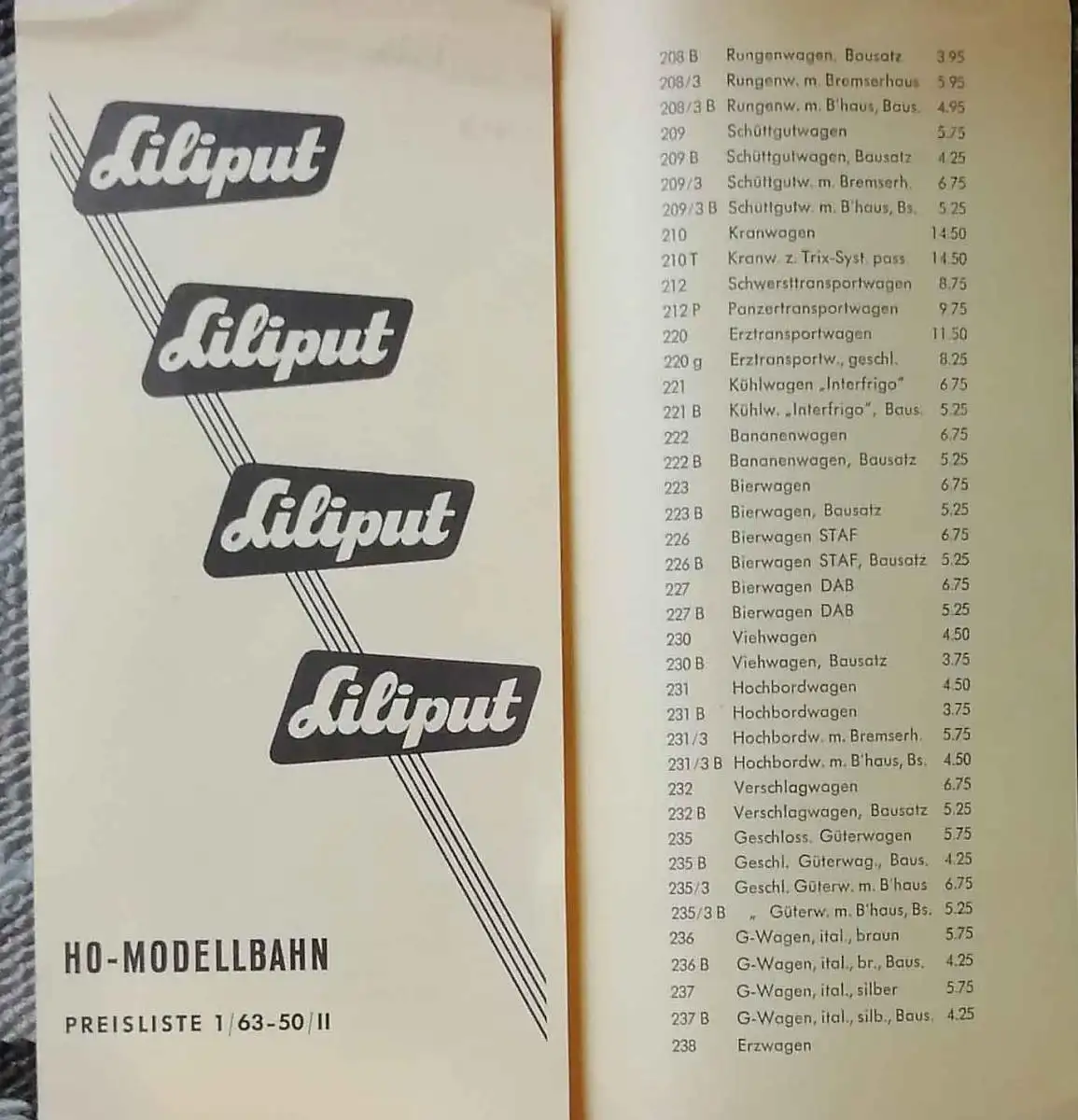 Liliput HO Modellbahn Preisliste 1/63 - 50/II.
