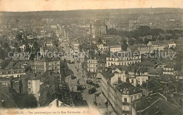 Lille_Nord Vue panoramique sur la Rue Nationale Lille_Nord postalisch nicht gelaufen 1911 Erhaltung siehe scans [FriedD77] Frierer
