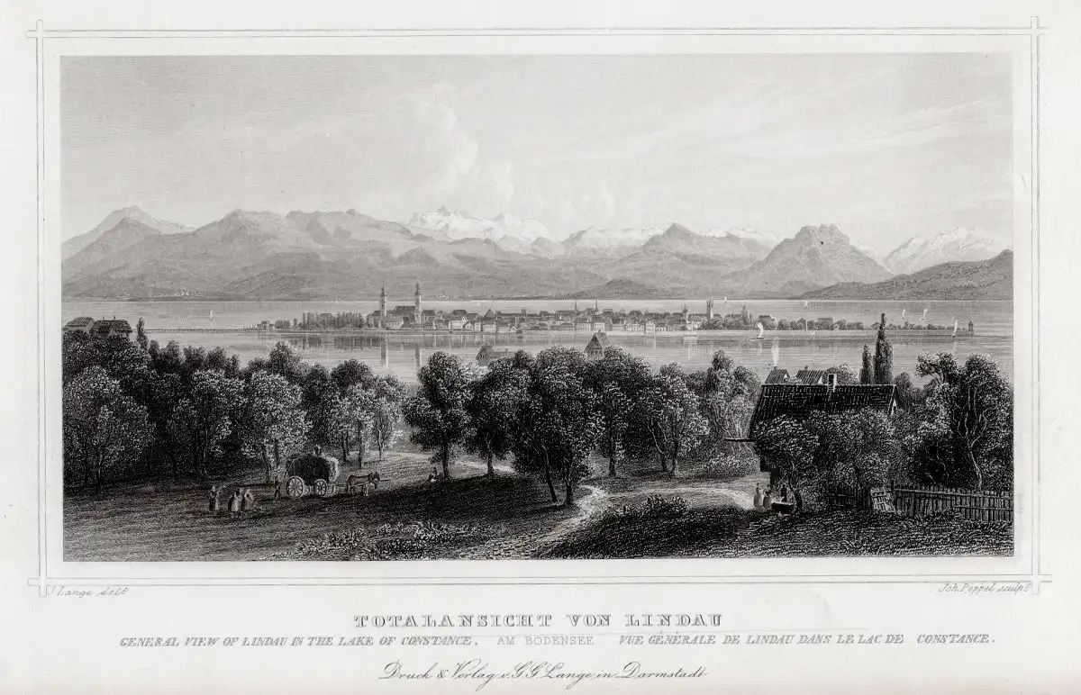 Lindau am Bodensee. Original Stahlstich Kurz um 1850