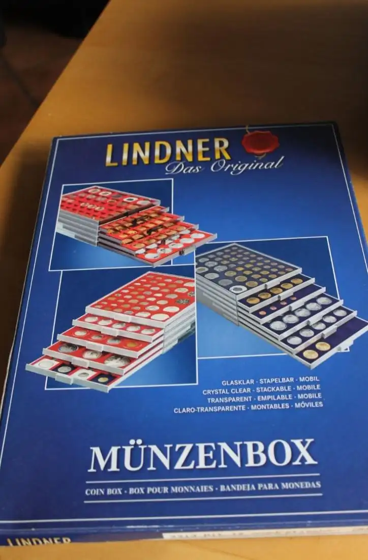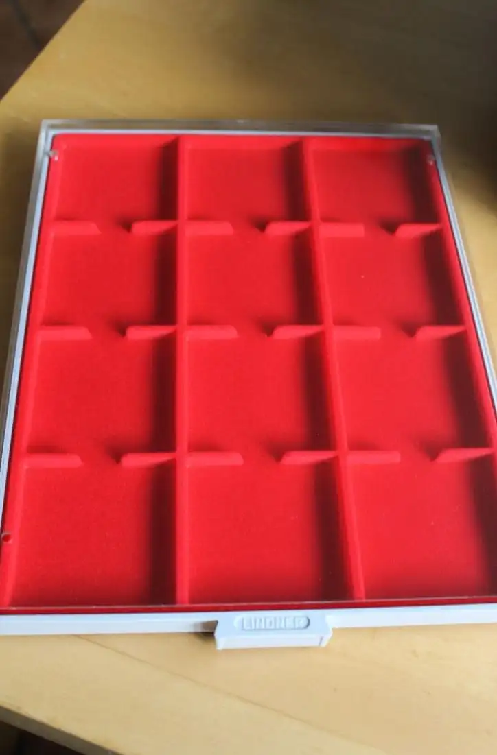 Lindner Münzbox 2213 mit 12 quadratischen Fächern bis 68 mm