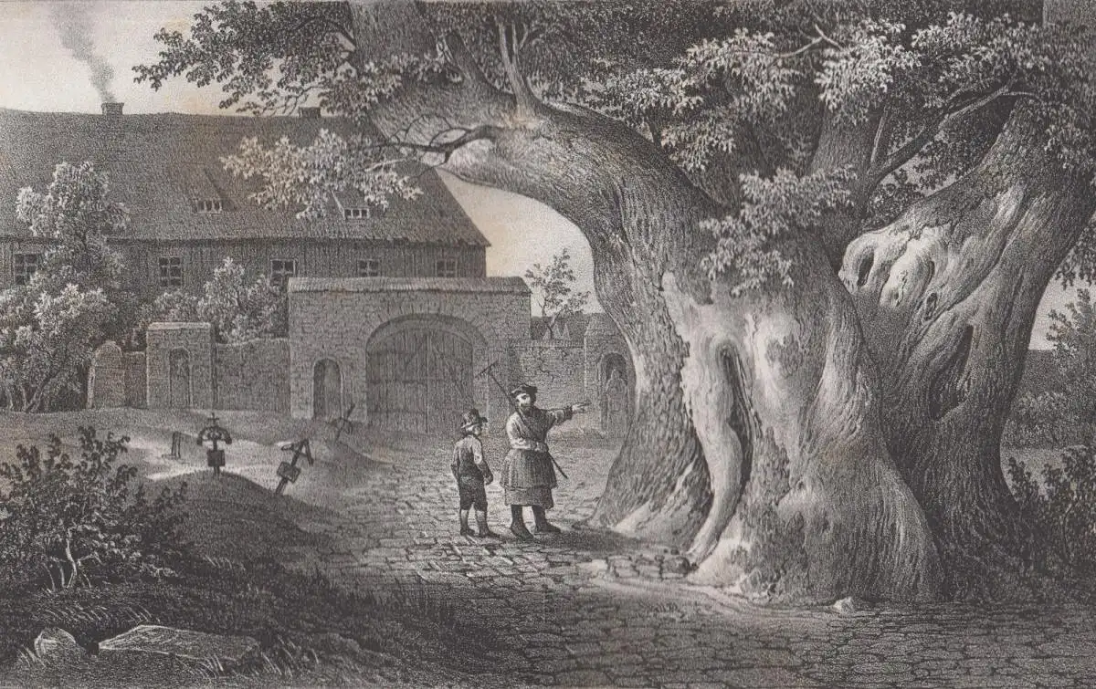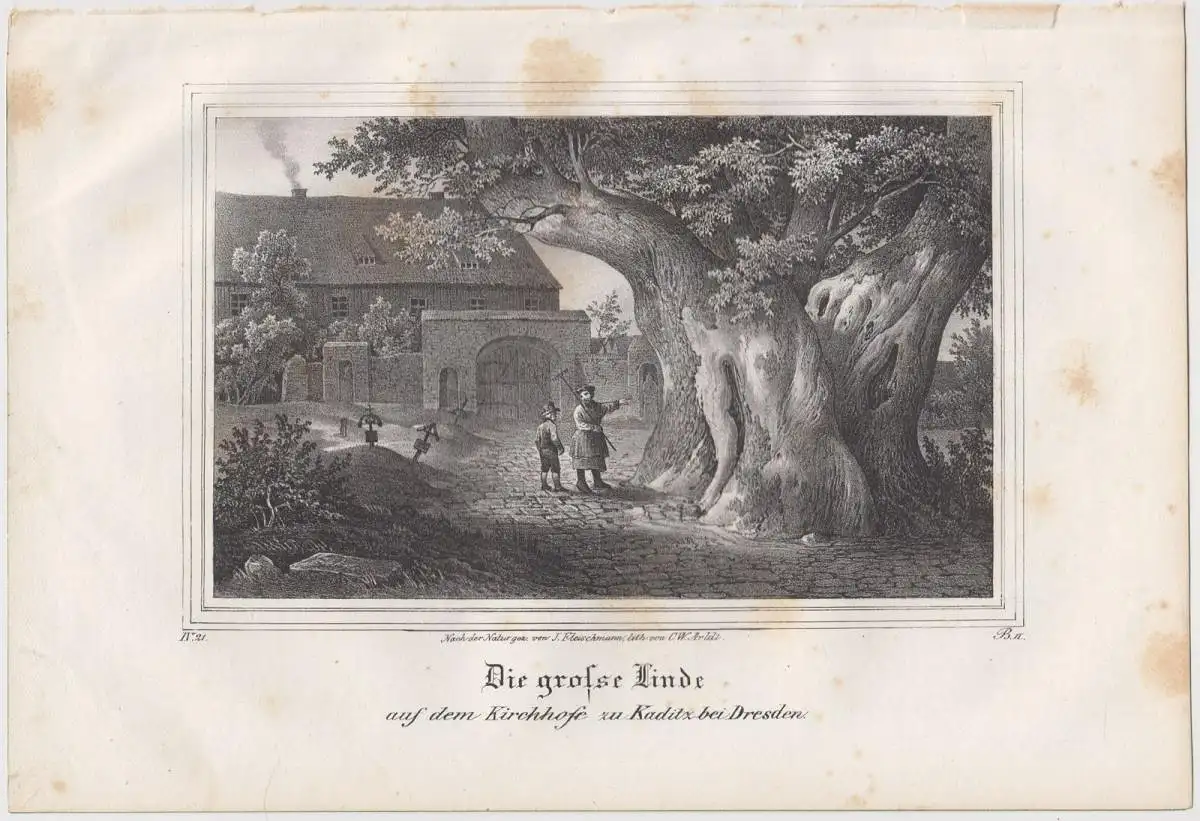 Bemerkungen: Zustand: Lithografie altersbedingt etwas gebräunt und etwas fleckig // Kreidelithografie aus dem Buch Saxonia, mittig betitelt. Bildformat 14,0 x 21,0 cm. Das Werk "Saxonia: Museum für sächsische Vaterlandskunde" ist ein bedeutendes Sammelwerk des 19. Jahrhunderts, das sich der Dokumentation und Darstellung der sächsischen Kultur, Geschichte, Natur und Landschaft widmet. Es wurde mit dem Ziel veröffentlicht, ein umfassendes "Museum auf Papier" zu schaffen, das das kulturelle und wissenschaftliche Erbe Sachsens zugänglich macht. Das Buch vereint topografische, geschichtliche, archäologische und naturwissenschaftliche Inhalte und ist mit aufwendigen Kupferstichen oder Lithografien illustriert. Es richtet sich an Leser, die sich für das reiche kulturelle Erbe Sachsens interessieren und ist gleichzeitig ein Zeugnis der romantischen Begeisterung für Heimatkunde und Vaterlandsliebe.