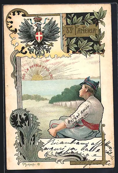 Lithographie 88. Fanteria, Per la Patria e Per il Re, glücklicher Soldat