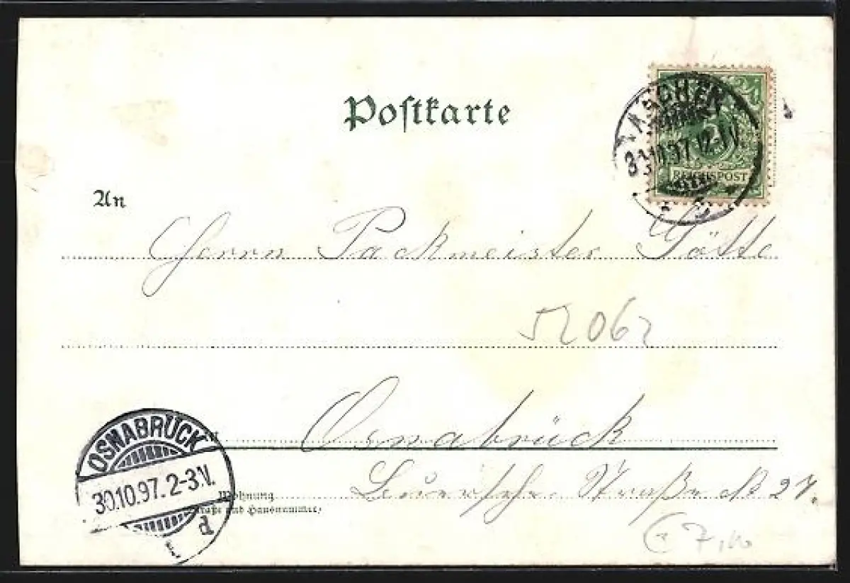 gelaufen 1897, Stempelspur, Bugspur links oben, guter Zustand