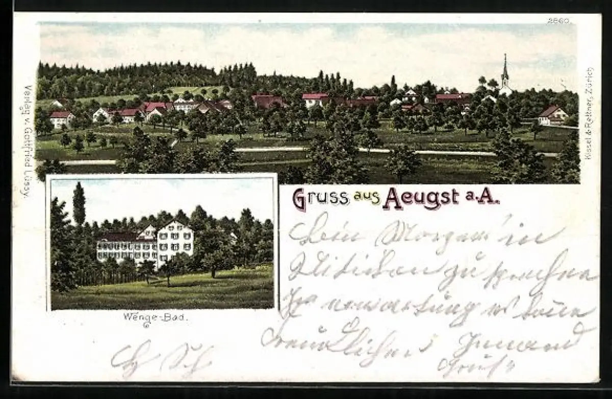 Lithographie Aeugst a. A., Wenge-Bad, Ortsansicht