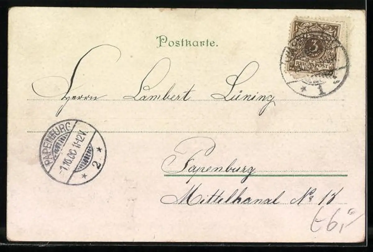 gelaufen 1900, Stempelspur, Eckknick rechts unten, guter Zustand