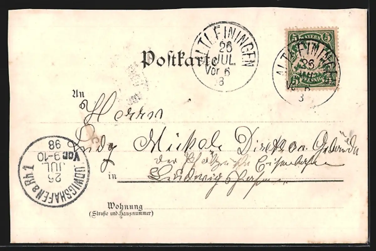 gelaufen 1898, oben beschnitten