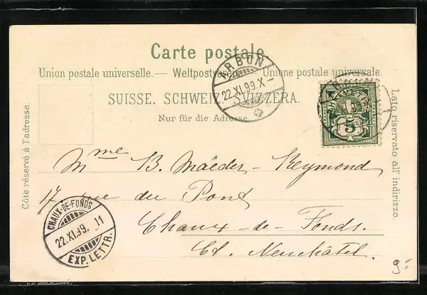 gelaufen 1899, Eckknick unten re., guter Zustand