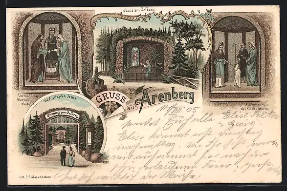 Lithographie Arenberg, Jesus am Oelberg, Vermählung Marias u. Josephs, Aufopferung des Kindes Maria