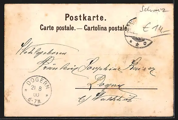 gelaufen 1900, Briefmarke entfernt, guter Zustand