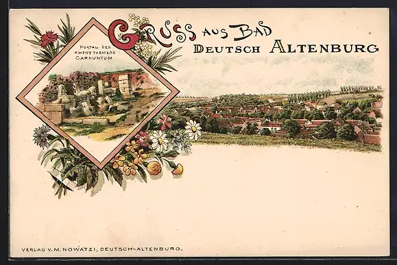 Lithographie Bad Deutsch-Altenburg, Portal des Amphitheaters Carnuntum, Totalansicht