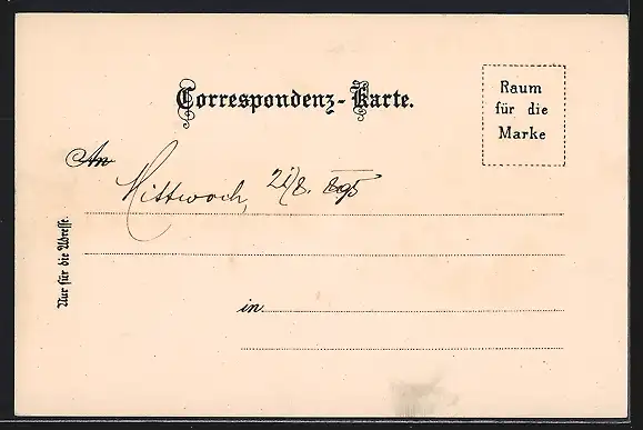Personenbezogene Daten auf der Rückseite der Karte wurden durch blauen Textmarker unkenntlich gemacht. Die blauen Stellen sind auf die Vorderseite durchgeweicht und wirken sich negativ auf das Postkartenfoto aus