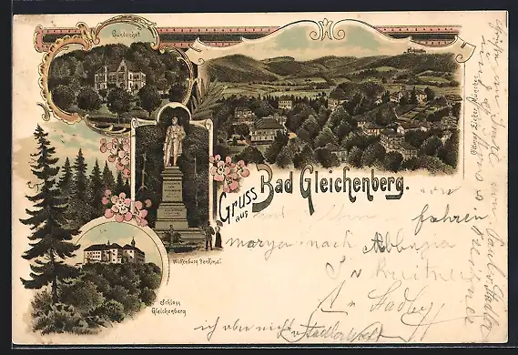 Lithographie Bad Gleichenberg, Ansicht von oben, Gundenhof, Schloss Gleichenberg