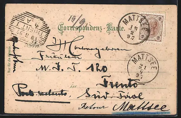 gelaufen 1897, Eckknick re. oben, guter Zustand