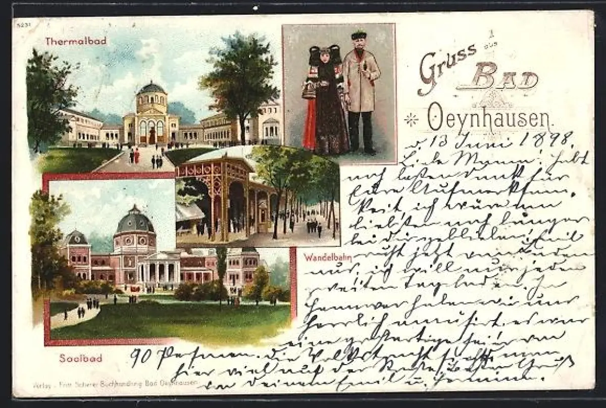 Lithographie Bad Oeynhausen, Thermalbad, Soolbad, Wendelbahn