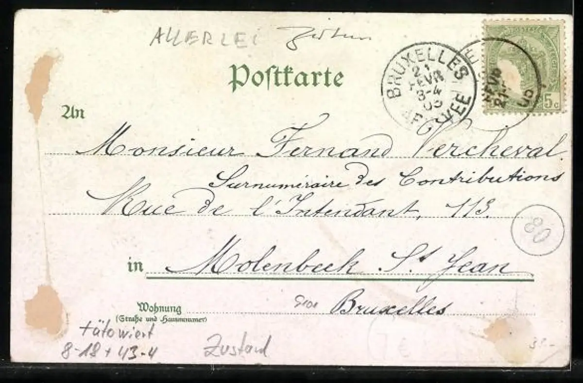 gelaufen 1905, rückseitig Oberflächenschaden, Eckknick li. unten, guter Zustand