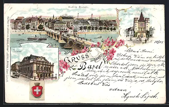 Lithographie Basel, Klein-Basel, Theater, Spaler-Tor