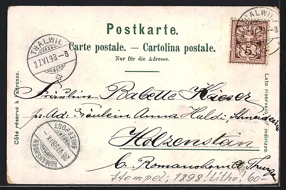 gelaufen 1898, Ecken bestoßen, guter Zustand