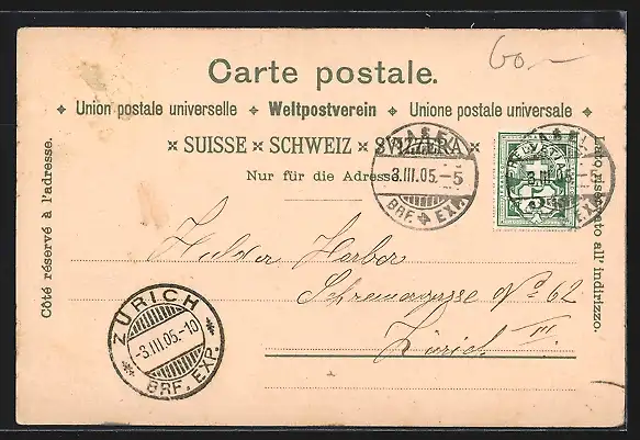 gelaufen 1905, Eckknick li. oben, guter Zustand