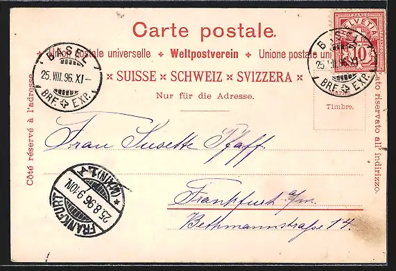gelaufen 1896, Stecknadellöcher li. oben und unten, guter Zustand