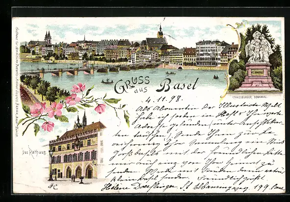 Lithographie Basel, Strassburger Denkmal, Das Rathaus