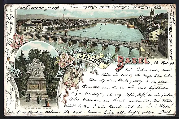 Lithographie Basel, Strassburger Denkmal, Totalansicht