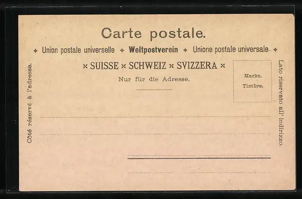 Personenbezogene Daten auf der Rückseite der Karte wurden durch blauen Textmarker unkenntlich gemacht. Die blauen Stellen sind auf die Vorderseite durchgeweicht und wirken sich negativ auf das Postkartenfoto aus