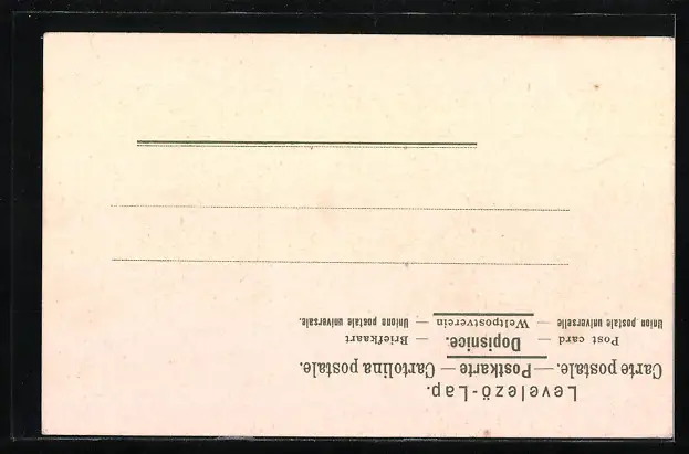 Personenbezogene Daten auf der Rückseite der Karte wurden durch blauen Textmarker unkenntlich gemacht. Die blauen Stellen sind auf die Vorderseite durchgeweicht und wirken sich negativ auf das Postkartenfoto aus