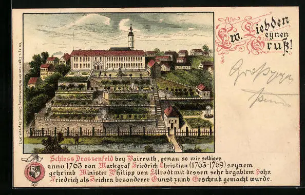 Lithographie Bayreuth, Ansicht Schloss Drossenfeld