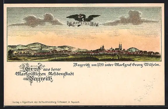 Lithographie Bayreuth, Ortspanorama um 1720, Adler