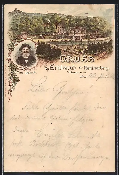 Lithographie Benthe, Gasthaus Erichsruh, Vater Rehbock