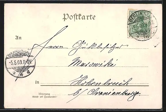 gelaufen 1903, Eckknick re. unten, guter Zustand