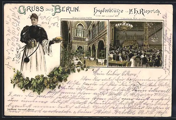 Lithographie Berlin, Gasthaus Hopfenblüthe, Unter den Linden 27